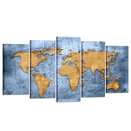 Amazon.com: Kreative Arts 5 Piece Large Map Canvas Wall Art World Big Size Modern HD Prints World Map Canvas Painting Wall Decor .