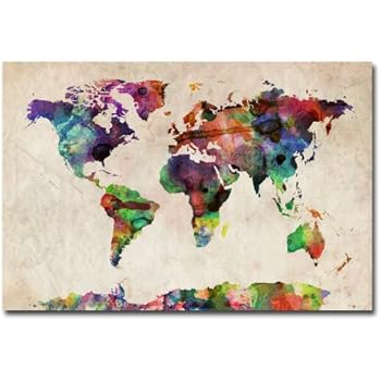 Amazon.com: Map of The World Watercolor by Michael Tompsett, 12x19 iCanvas "Urban Watercolor World Map V" by Michael Tompsett Canvas .
